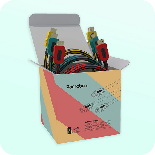 Bulk Case of HDMI to HDMI Cables - Hyperfast Trio Color-Coded HDMI 2.1 Cables supports 8K 60Hz, 4K 120hz