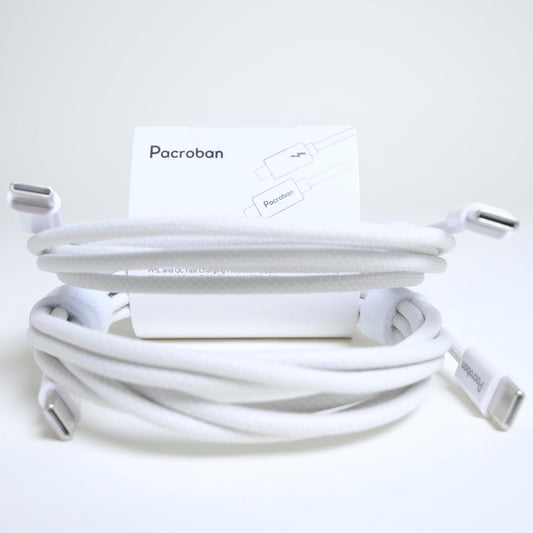 FastCharge USB-C to USB-C Cable, 6 Foot, 2 Pack, Soft Touch Braided, White