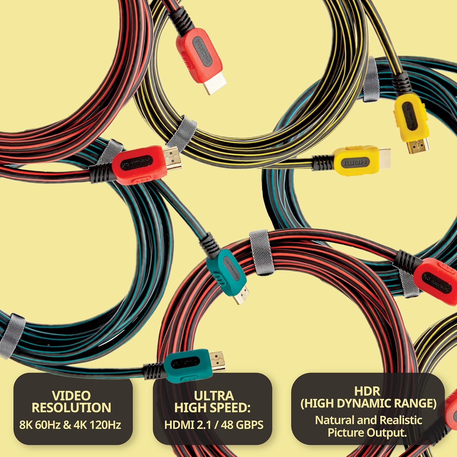 The Pacroban HDMI 2.1 Trio 3-Pack (3 Color) is a premium bulk solution for businesses and resellers who want high-performance HDMI cables with color-coded convenience.