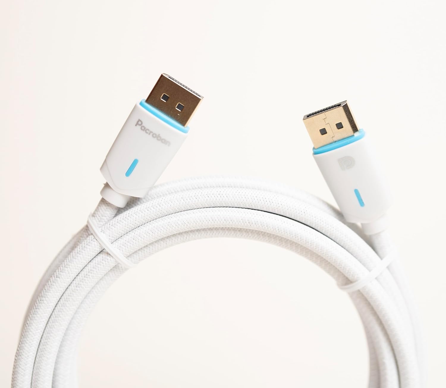 Pacroban DisplayPort 1.4 Cable, 8K 60Hz, 4K 120Hz, HDR, Cotton Braided - DisplayPort to DisplayPort White | Ideal for Laptop, PC, Gaming Monitor, Projector, TV